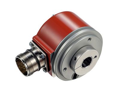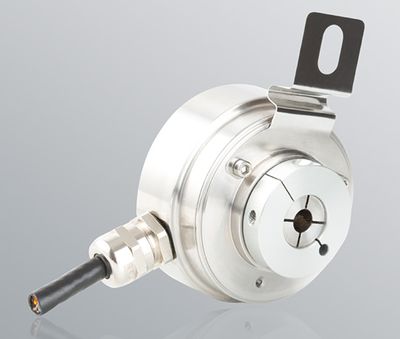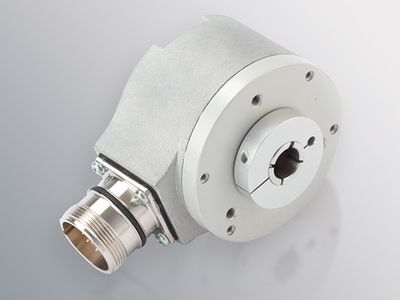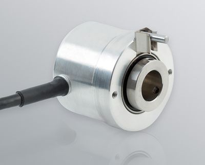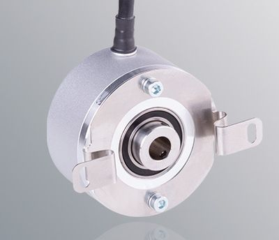 High-resolution hollow shaft encoder. Resolution: up to 50,000 ppr. Its 58 mm diameter and IP67 protection make it suitable for harsh industrial environments.